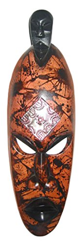 NOVICA Decorative Large Sese Wood and Brass Mask, Orange 'Royalty'