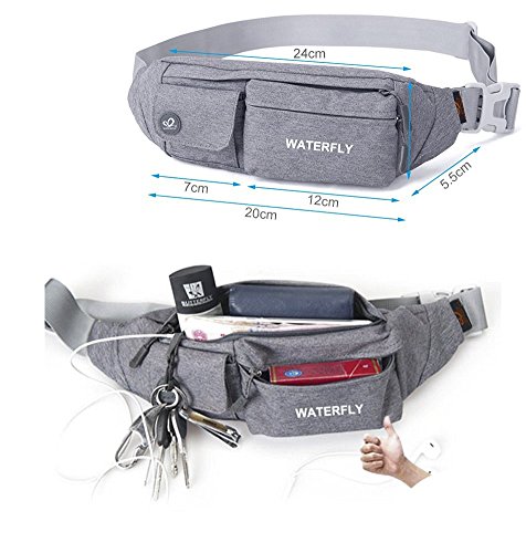 WATERFLY Water Resistant Waist Bag Fanny Pack / Hip Pack Bum Bag for Man Women Sports Travel Running Hiking / Money iPhone 6 / 7 6S / 7S Plus Samsung S5 S6