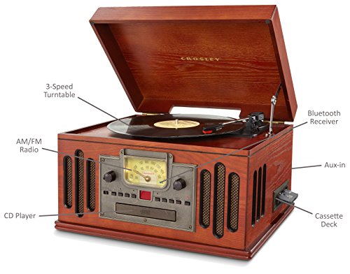 Crosley CR704D-PA Musician 3-Speed Turntable with Radio, CD/Cassette Player, Aux-In and Bluetooth, Paprika
