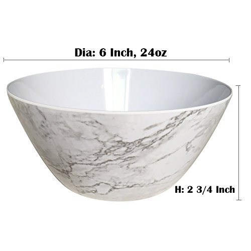 Durable Cereal Bowls These are useful melamine bowls, Dia 6* H 2 3/4 inch,24 Ounce. Good for serving everything, especially for soup, cereal, popcorn, salad, pasta, oatmeal, and ice cream etc.