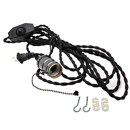 LJY 15ft/4.5m Vintage Extension Hanging Lantern Twisted Textile Cord with E26/E27 Base Socket & Dimmer Switch, 2-Prong US AC Power Plug for Pendant Lighting