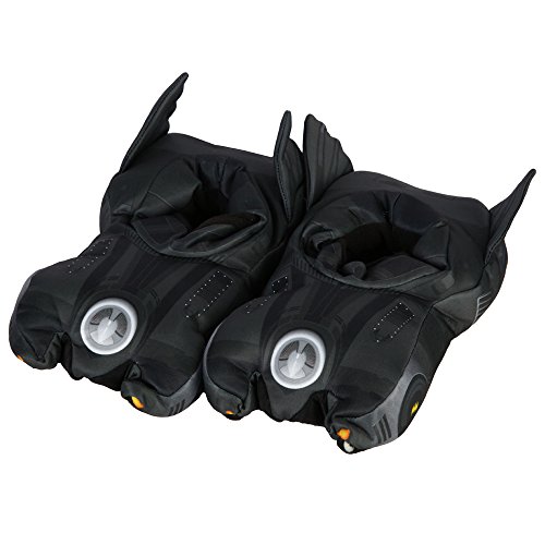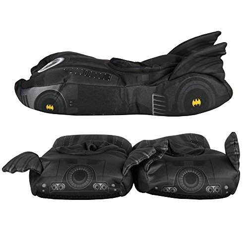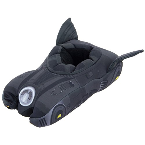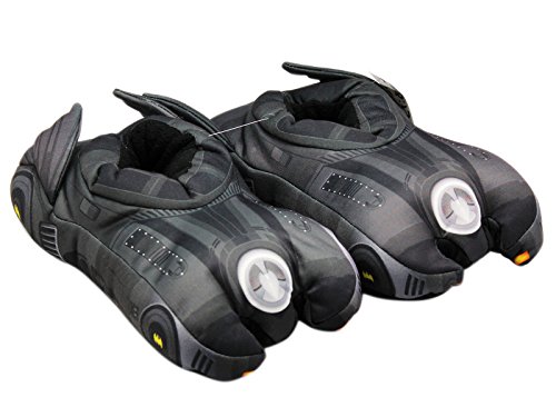 Binding : Apparel Product Description Batman is a high tech super hero. The Batmobile is his famous high tech car as seen in the Batman movies. These are DC Comics brand slippers for women. The slippers look just like the Batmobile and are colored black and gray. These slippers are cushioned on the bottom and they are intended for indoor use only. 0