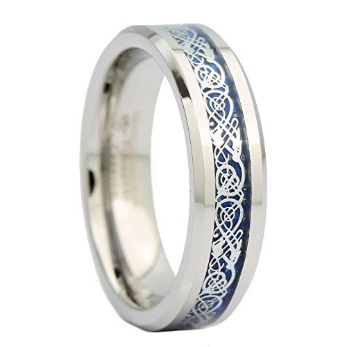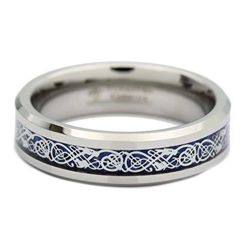 -. Title : 6MM & 8MM Blue Celtic Dragon Men's / Women's Tungsten Carbide Ring Wedding Band