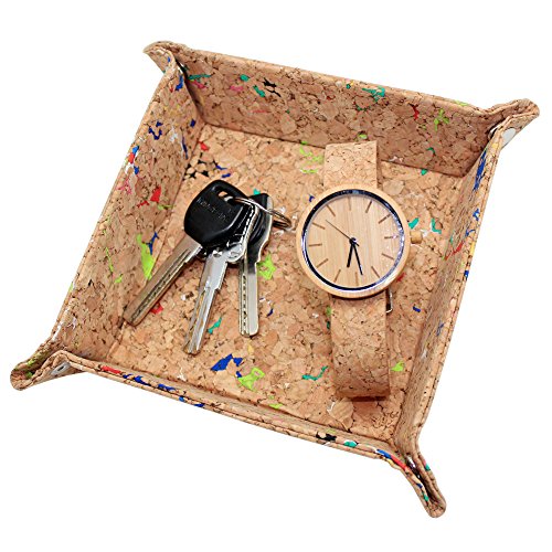 -. Title : Boshiho Cork Jewelry Catchall Key Coin Box EDC Valet Tray Change Caddy Bedside Box Storage Eco-friendly Gift
