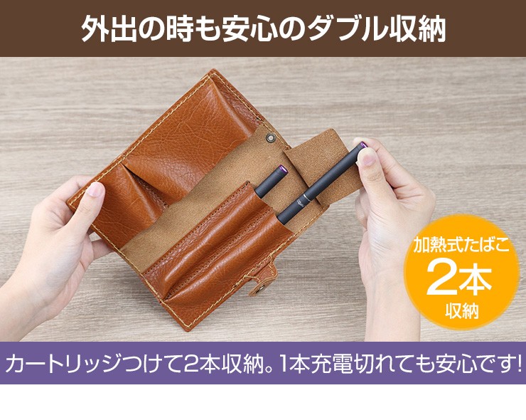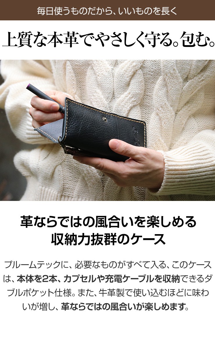 商品名 牛革 加熱式タバコ プルームテック ダブルポケット ケース