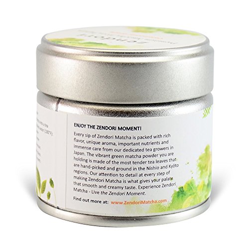 - Feature : ★ ALL DAY ENERGY BOOST & INCREASED FOCUS: If you want to feel energized without having to drink coffee, then Matcha is the healthier and much better option for you. Matcha contains 2 to 3 times LESS caffeine than regular brewed coffee and its caffeine is released over a three to four hour period, so drinkers don't feel jittery. Therefore, a cup of matcha green tea promotes concentration and clarity of mind without producing any of the nervous energy typically associated with coffee. / ★ METABOLISM BOOST & FAT BURNING: With only about 3 calories per serving, matcha is found to be a new favorite in the weight loss industry due to the fact that it can increase metabolism and burn fat. According to a study published in the American Journal of Clinical Nutrition, drinking matcha can increase thermogenesis (the body's own rate of burning calories) from 8-10% to 35-43% of daily energy expenditure. Another study shows that you will be able to burn 25% more fats during exercise when you drink matcha right beforehand. / ★ ANTIOXIDANT POWERHOUSE: Due to to its impressively high level of antioxidant, matcha crowns the antioxidant level comparison study above, beating all the other well-known superfoods. It has an ORAC value of 1,573 per gram, which is 6 times more than that of Goji berries and 25 times more than that of Açaí berries; both are the superstars in the fitness industry. You know what that means? By consuming matcha, you are taking in a ton of disease-fighting compounds (antioxidants) to help destroy free radicals in the body, which are damaging our cells everyday, and play a role in the aging and all sort of diseases. No wonder Matcha is considered to be a superfood. / ★ WHY ZENDORI CEREMONIAL MATCHA IS SUPERIOR - NATURALLY SWEET, FRESH & INVITING AROMA We stand by the quality of our matcha, therefore we make sure the green tea leaves we use come from the best soils of Japan-Nishio and Kyōto regions of Japan. These regions have the ideal environment to produce matcha with superior quality. When the first harvest time comes, our Japanese tea leaf pickers would handpick the youngest and thinnest tea leaves from the top of the plants, which are the ones that get the most amount of nutrients and have the most amount of umami. Immediately after picking, the fresh tea leaves are steamed and air-dried to stop further fermentation to preserve the vibrant green color of the tea leaves, following by the de-stemmed and de-veined process. One of the most important steps in producing high quality matcha is THE GRINDING PROCESS. Our tea leaves are traditionally ground between handcrafted granite wheels made by one of the few remaining stone carvers in Japan. They are ground to micron size, so fine that Zendori matcha can penetrate through your finger prints. The fine matcha powder is sealed in an airtight aluminum tin or pouch to preserve its natural freshness, color and aroma for you to really experience zen. With its packaging, it is also very good as a gift! / ★ 30-DAY MONEY BACK GUARANTEE & FREE EBOOK - Every order comes with a free eBook that is packed full of fun tips and trivia on Matcha, recipes and guide on healthy living. We also offer a 100% money back guarantee: we value and standby our customers and we take Customer Satisfaction seriously. If after 30 days you decide you are not completely satisfied with our product, simply return and we will refund you, NO QUESTIONS ASKED. We believe in offering everyone a No Hassle purchase and No Hassle returns. There is absolutely NO RISK in your purchase, so why not start experiencing the health benefits of matcha today?