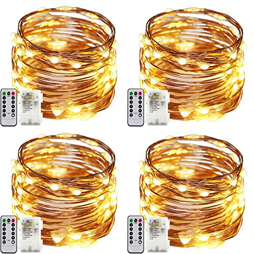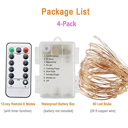 4 Sest of Fairy String Lights,ER CHEN(TM) 8 Lighting Model Indoor&Outdoor Waterproof Battery Operated 60 LED String Lights on 20 Ft Long Ultra Thin Copper Wire with 13 Key Remote&Timer,Warm White