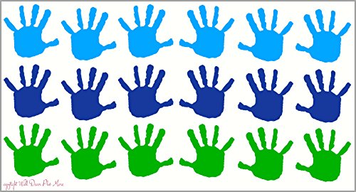 Wall Decor Plus More WDPM3566 Handprint Vinyl Wall Decals Sticker, Great for Classroom, Daycares and Preschool, Ice Blue/Traffic Blue/Lime Green, 18 Piece