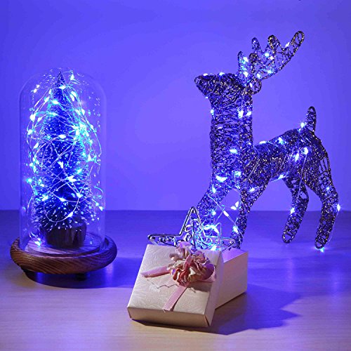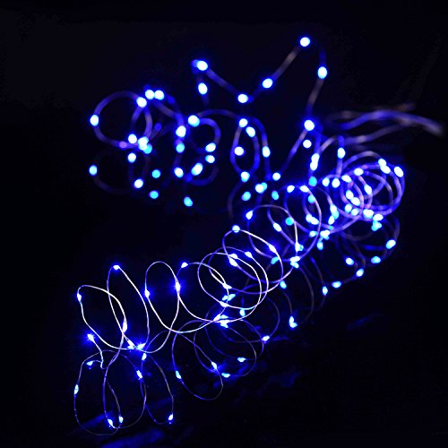Homestarry 66 Super Bright Blue Color LEDs Lights on 15.2 Ft Long Silver Ultra Thin Wire with 3.74 Inches Distance Between LED Bulbs and 21.5 Inches Clear Cable Between Wire and Battery Box. Total String Over 16 FEET.