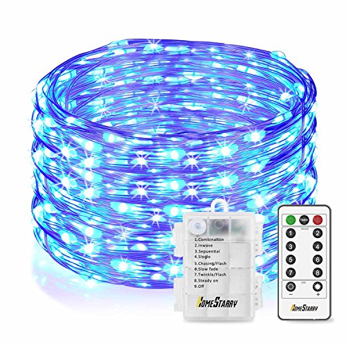 Homestarry Fairy Lights 8 Modes String Lights Battery Operated Twinkling 66 LEDs Fairy String Lights 16.4FT Copper Wire Firefly Lights Remote Control for Bedroom Wedding Festival Decor(Blue)