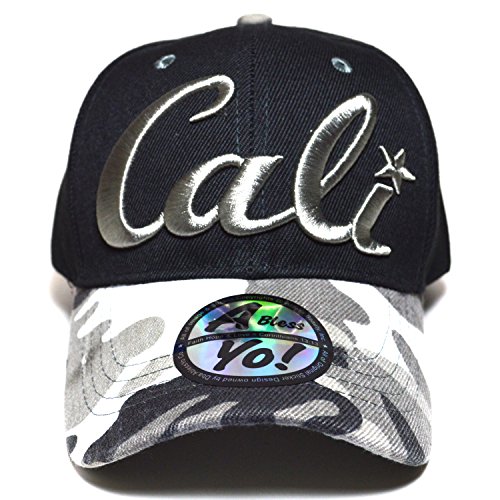 Binding : Apparel Product Description 3D Cali Embroidered Curved Visor Bill Caps Hiphop Baseball Golf Basketball Sports Head Wear Hats AYO1039 Structured Firm Front 6 Panel Cap with 6 Embroidered Eyelets Durable Golf Baseball Sports Basketball Fashion Hat Wear Material : 100% Acrylic [ Made by High Quality Premium Fabric ] Adjustable : Velcro Loop Tape Closure / Men Women Fashion Accessories Head Wear ! One size fits most with adjustable, fitting up to size 7 1/2 ~ x Large Crown measures 4 3/4 inches deep. [ 8(W) X 10.5(L) X 4.75(H) inches ] Bill measures 2 3/4 inches long, constructed, high profile, stiff and flat ! 0