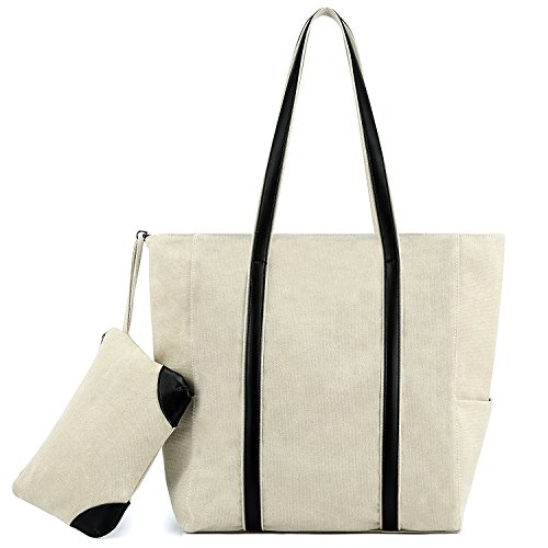 Plambag Canvas Shopper Tote Large Top-Handle Shoulder Bag + Pouch