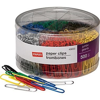 Staples Jumbo Vinyl Coated Paper Clips, Smooth, 500/Tub