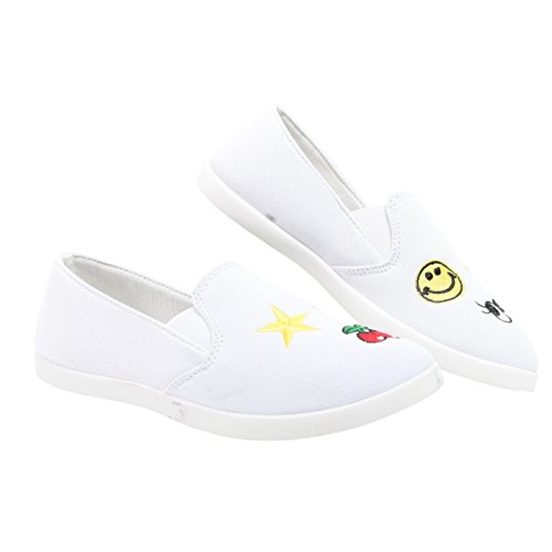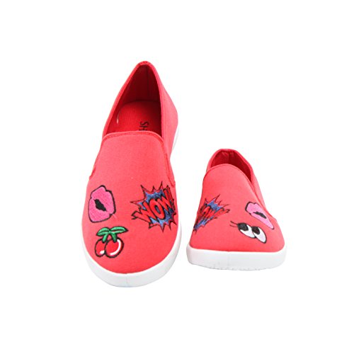 Product DescriptionShoe Vibe Kim Womens Casual Canvas Slip-On Sneaker With Patches Comfy Insole and Lightweight0