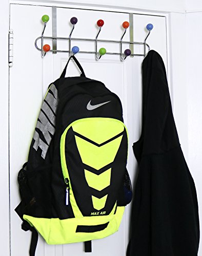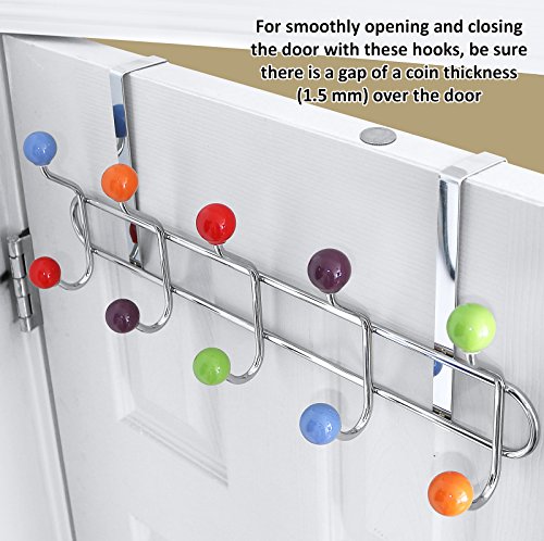 Galashield Over The Door Hook Rack 5 Multi color Ceramic Knobbed Hooks and Stainless Steel Organizer Rack (10 Hanging Hooks)