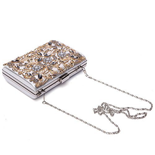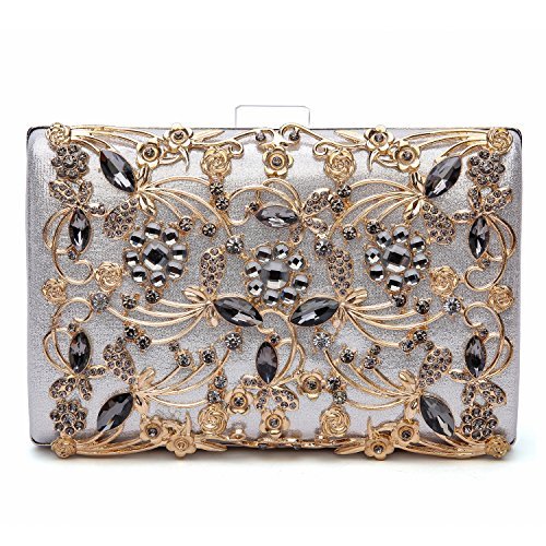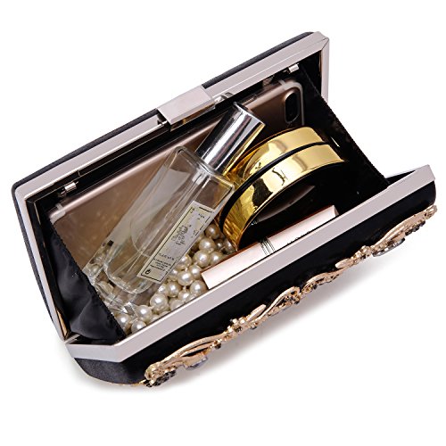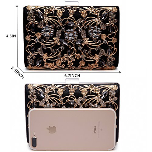 Material: Covered with a fully beaded rhinestones, metal hardware and silk fabric lining.