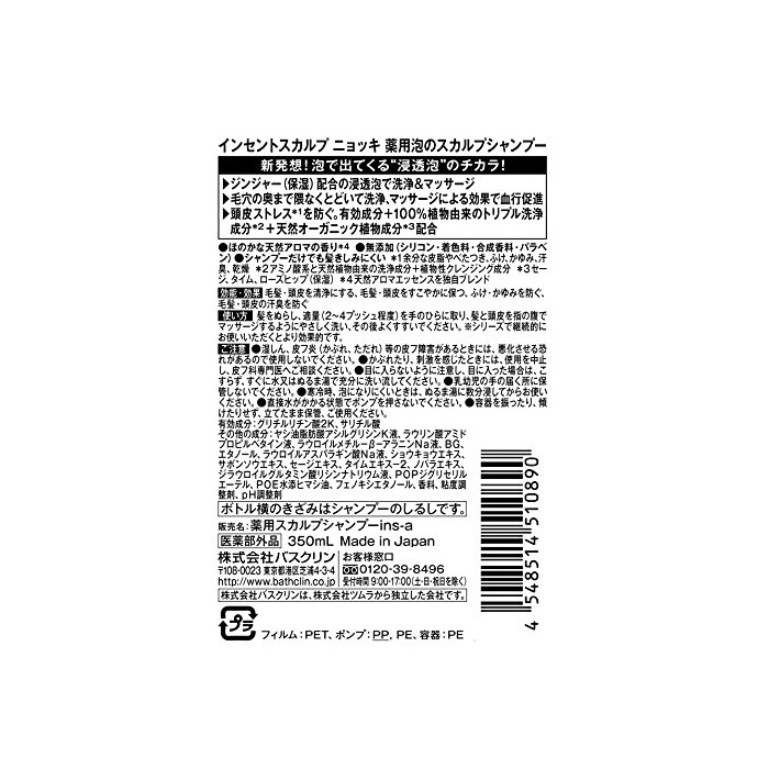 원본상품명: インセントスカルプ ニョッキ ?用 泡のスカルプシャンプ? 350mL 【??部外品】