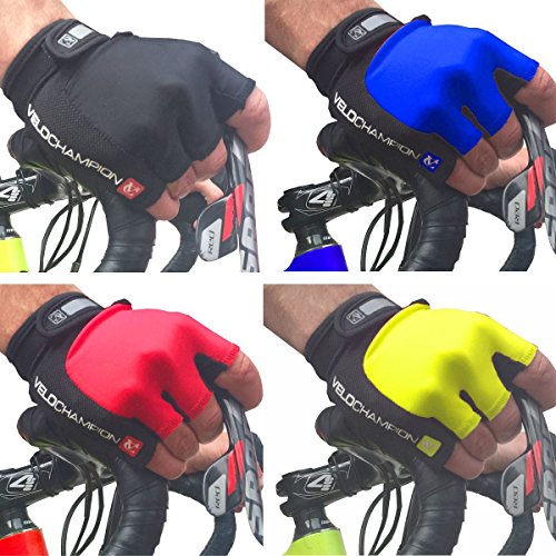 -. Title : VeloChampion Summer Cycling Race Gloves - Fingerless Mitts with Pro Gel Palm available in Black, Blue, Red or Fluoro Yellow