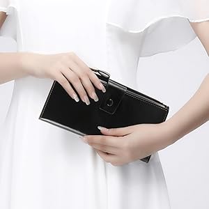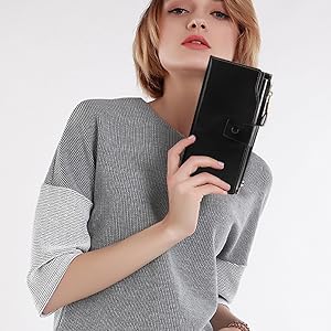 - 1.軽量で持ち運び便利:この財布のサイズは19.3*9.8*2.8cmで、単に手持ちで持ち歩くことだけではなく、バッグに入れることもできます。スマホ入れ付き、iPhone 7/ X / 8 Plusも収納可能です。重量はわずか160gで、軽量な財布となっています。落ち着いた色でビジネスでもカジュアルでもきちんとした服装でも合わせやすいです。