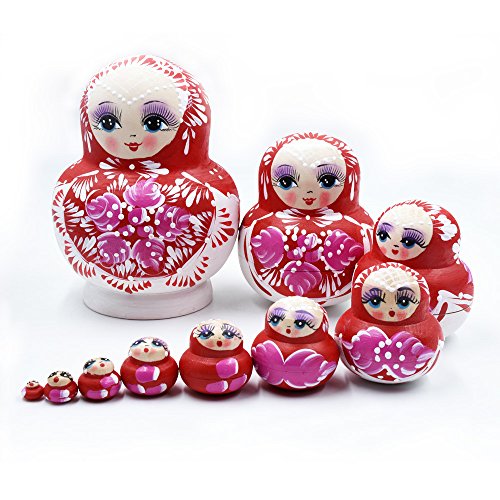 Package Includes: 1 * Set of ten Pieces Nesting Doll Matryoshka Russian Handmade Wooden Little Girl Pattern Nesting Dolls Toy Gift Note: Because parts of the dolls are small size, do not let children play it alone to prevent swallowing.