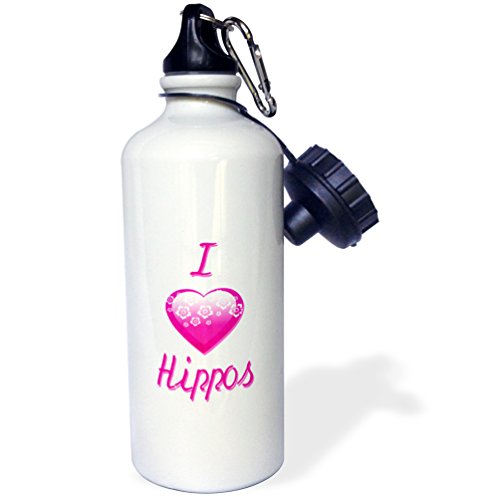 3dRose wb_121592_1 Pretty Pink Flowery I Love Hippos Sports Water Bottle, 21 oz, White