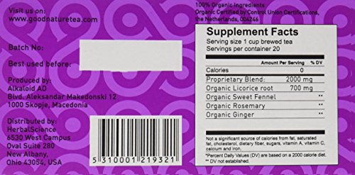 -. Feature : Tea to promote healthy digestion and regularity. / It is a perfect blend of herbs to help improve metabolic functions and promotes healthier digestion. / Contains no sugar, artificial colors, artificial flavors or preservatives / 100% Certified USDA Organic, 100% Caffeine Free, 100% Gluten Free / 1 box containing 20 tea bags