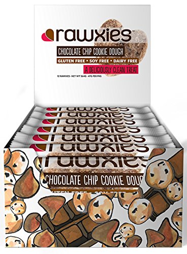 Rawxies Nutritious Gourmet Cookie Snack Bars, Chocolate Chip Cookie Dough, Gluten Free, Vegan, Box of 12 Healthy Cookies