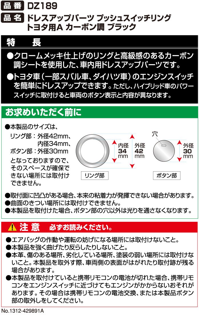 Carmate cover for the push start button dress up parts Toyota A type carbon style black DZ189