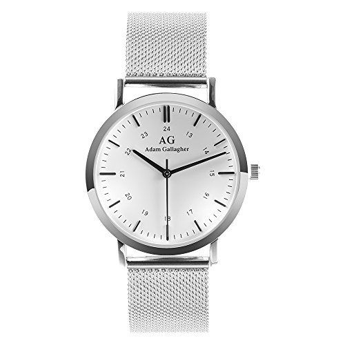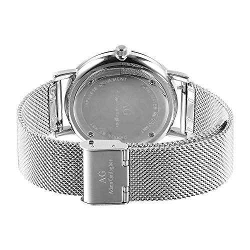 -. Title : Adam Gallagher Unisex Wrist Watch Three-Hand Analog Quartz Movement Business Casual Interchangeable Stainless Steel Silver Mesh Strap Water Resistant Watch