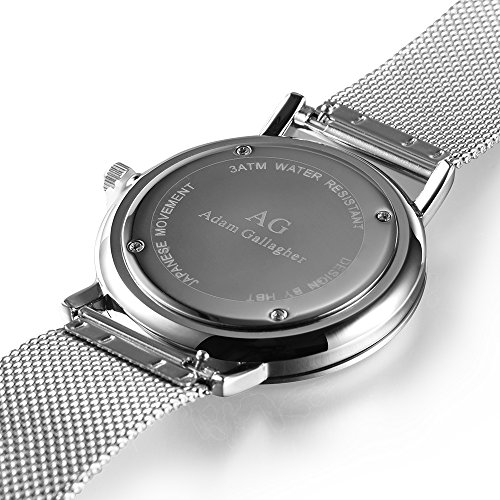 -. Feature : PRECISE TIME KEEPING and SCRATCH RESISTANT FACE: CITIZEN Japan Miyota Quartz Movement, provide precise and accurate time keeping. High hardness arched mineral glass watch face with scratch resistant feature. / QUALITY DURABLE and COMFORTABLE MATERIAL: 38mm/1.50inches stainless steel alloy fade-proof case make it super durable, quality stainless steel mesh band strap provide fashion and comfortable wearing experience. / SIMPLE CASUAL MINIMALIST FASHION DESIGN: analog dress watch casual three hand design and mesh band, make it available for you to wear it on any occasion. It's also a nice Gift for your family, friend or lover with the great package. / WATERPROOF FOR DAILY USE: 98FT water resistant (30M). Perfect for all kinds of business, casual, indoor activities or daily use. NOTE: it is not recommended to wear for swimming or related underwater activities. / All the ADAMGALLAGHER watches have 12 months warranty replacement.
