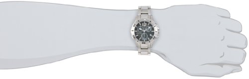 -. Feature : Round watch featuring debossed dive-style bezel, luminous hands, magnified date window, and three chronograph subdials / 38 mm stainless steel case with mineral dial window / Japanese quartz movement with analog display / Stainless steel bracelet with fold-over clasp with double push-button safety / Water resistant to 100 m (330 ft): In general, suitable for swimming and snorkeling, but not scuba diving