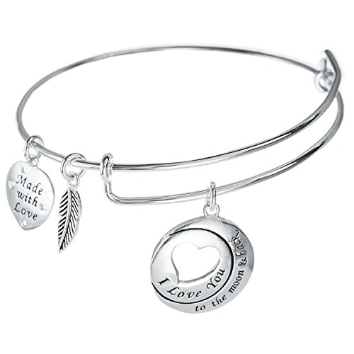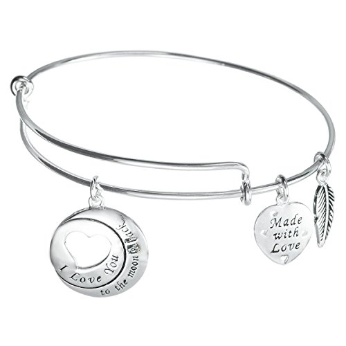 -. Binding : Jewelry -. Brand : Qina -. Department : womens -. Feature : Theme: Love / 925 Sterling silver (Stamped) / Size: approximately 62mm long x 57mm wide, with 1.5mm (14GA) wire -. Label : Queenberry - Alex and Ani Style -. Manufacturer : Queenberry - Alex and Ani Style -. Model : BS119X1 -. MPN : BS119X1 -. PartNumber : BS119X1 -. ProductGroup : Jewelry -. ProductTypeName : FASHIONNECKLACEBRACELETANKLET -. Publisher : Queenberry - Alex and Ani Style -. Studio : Queenberry - Alex and Ani Style -. Title : Sterling Silver I Love You To The Moon & Back Heart Leaf Charm Adjustable Wire Bangle Bracelet