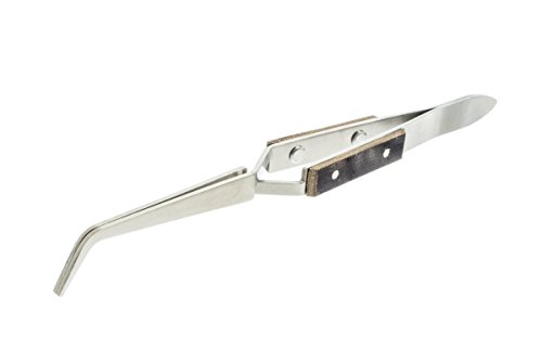SE TW509FG 6-1/2" Curve Tipped Cross Locking Tweezers with Fiber Grip