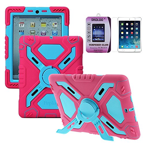 -. Title : Skoloo Silicone Kid Proof Duty Dual Stylis Protective Case with Kickstand and Sticker + Tempered-Glass Screen Protector - Rainproof Sandproof Dust-proof Shockproof for iPad mini 3 - SLC01 (Rose/blue)