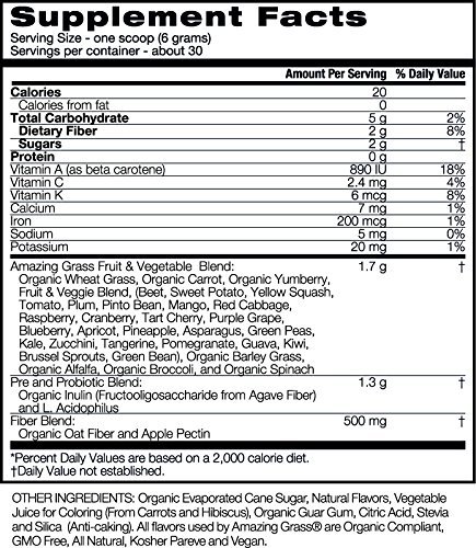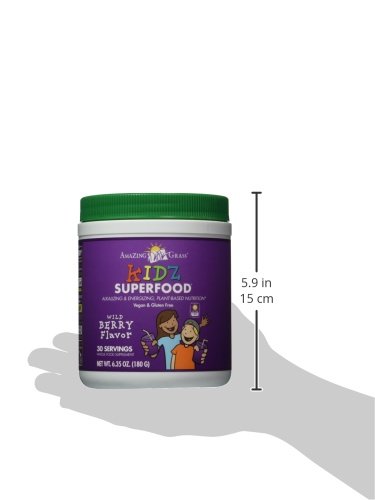 We’re not quite sure who loves it more. Us...or them. Kidz Superfood is a guilt-free nutritional powerhouse created from a rainbow blend of organic greens, fruits and vegetables...all in a single delicious drink powder. A single glass of Kidz Superfood delivers amazing green nutrition and helps achieve the daily recommended dosage of fruits and vegetables. At Amazing Grass our roots run deep...Back to our family farm in Kansas, where for over 3 generations Amazing Grass has organically grown & harvested the most nutrient-dense greens on earth. Today, we thoughtfully craft our greens with the highest quality, plant-based ingredients curated from like-minded farmers from around the world. Amazing Grass products are a delicious way to nourish your body with the whole food nutrition it needs to feel amazing every day. Mix one serving with 4 to 6 oz. of water, juice, or mixed into your favorite smoothie! Amazing Grass is committed to improving our customer’s lives with our offering of premium organic whole food nutrition products as Mother Nature intended. If you have any questions, allergies or concerns; before consuming any of our products we recommend consulting your healthcare professional or a registered dietitian.Feature