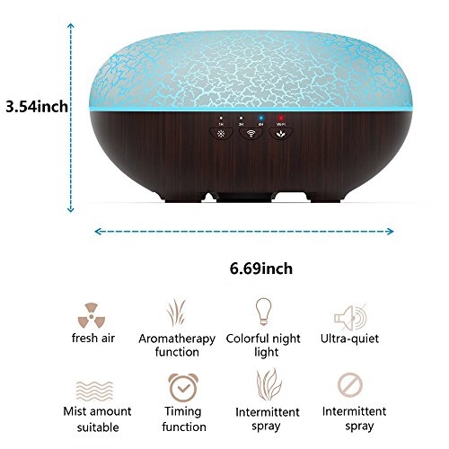 Adjustable LED Light. You can choose among 7 colors between two mode: steady on/changing color. Each color is adjustable between bright and dim.The soft light creates romantic atmosphere which helps you escape the hustle and bustle of modern life. This aroma diffuser is compatible with Amazon Alexa Skill "SSG Smart Home", you can use your Alexa to turn it on/off and change the led colors.