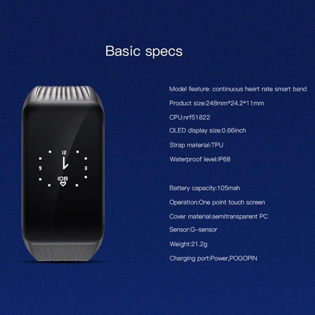 Feature:LED display,Auto Date,Heart Rate Monitor,Alarm,Call Reminder,Sleep Tracker