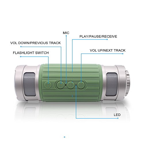 Bluetooth Speaker,Popwave OP1005 Waterproof Speakers Outdoor Portable Wireless Bluetooth Speaker 6W Output HD Bass 40mm Dual Driver with Flashlight, Universal Compatibility for Android, iPhone