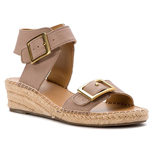 Product DescriptionVacation ready! Soft leather or nubuck upper on a classic espadrille silhouette. Adjustable ankle strap; topline buckle is decorative/non adjustable0