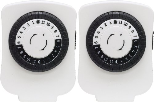 -. Feature : Mechanical Plug-In Timer; 2-pack / 24 Hour Programmable / Indoor / 1 Polarized Outlet per timer / 48 On/Off options / Automate a lamp or device at desired times daily / 24-hour with 30-minute programmable intervals daily cycle / One polarized outlet / Works with CFL, LED & incandescent lighting / 2-pack
