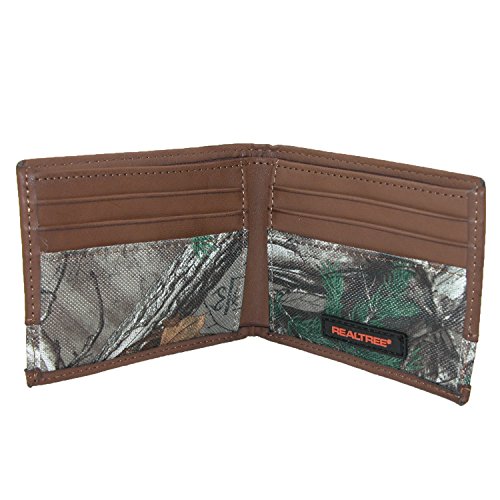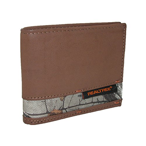 -. Binding : Apparel -. Brand : Realtree -. ClothingSize : One Size -. Department : mens -. Feature : Material is faux leather and canvas / Measures 4.25 x 3.5 x .25 inches when closed and 8.5 x 4.25 x .125 inches when open / Interior features 6 card slots, 2 slip pockets, and a full length money slot / Soft hand / Realtree camo P.R.Int canvas on bottom interior and exterior -. Label : Realtree -. Manufacturer : Realtree -. PackageQuantity : 1 -. ProductGroup : Apparel -. ProductTypeName : ACCESSORY -. Publisher : Realtree -. Size : One Size -. Studio : Realtree -. Title : Realtree Men's Leather Passcase Bifold Wallet with Camouflage P.R.Int Insert