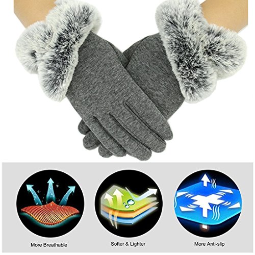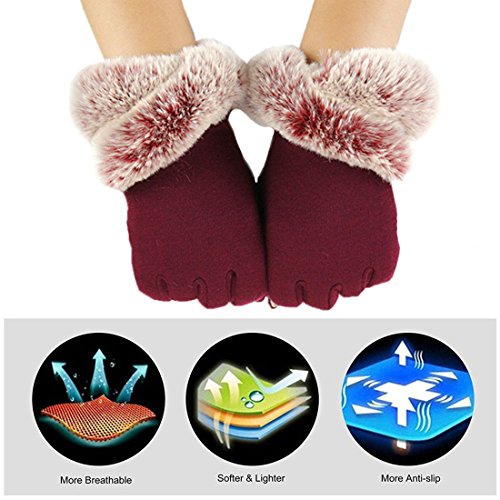Product Feature - Comfortable materials, soft plush lining, stylish appearance. - High quality cotton outside, plush inside and the faux fur trim, to keep you warm. - Proportional sizing for people's palm width and finger length. - Touchscreen technology allows you to better operate touchscreen devices. - This glove is a special insulation fabrics , windproof, warmth, drying, breathable characteristics, are skier and climber prefer. - Fashion design is popular with many people and will bring you many compliment. - Great for winter,driving,or just to fit your style. - A great gift for your lovers, friends, families and yourself! 0