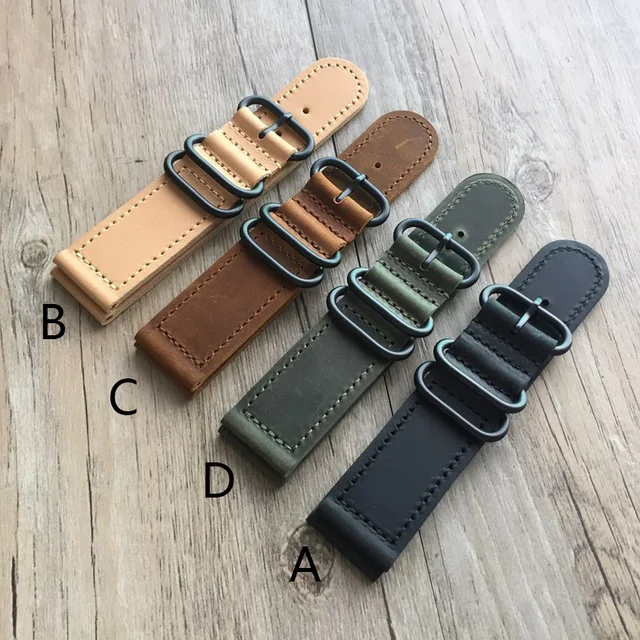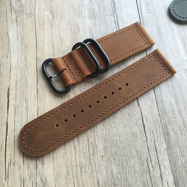 | [해외] 18 20 22 24 미리메터 미친 말 피부 얼굴 정품 가죽 손목 시계 블랙 육군 녹색 카키 브라운 개성 남성과 여성 시계 스트랩 |