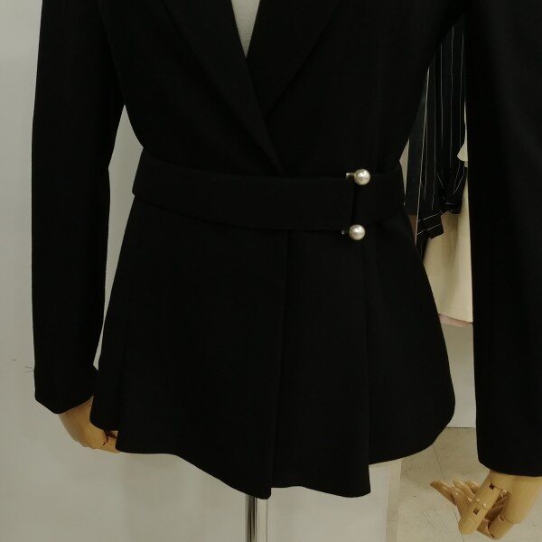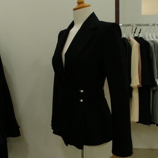 군더더기없이 깔끔한 쟈켓입니다..날씬하게 라인을 잡아 주고 진주밸트 포인트로 고급스러운 디자인입니다.슬림하며 밑단에 살짝 주름라인이 잡혀 여성스러운 쟈켓입니다.