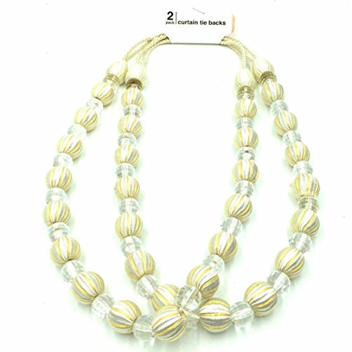 Mmei Set of 2 Stylish Rayon Bead Rope Tiebacks Holdbacks for Window Curtain Drapes Bed Canopy Home Decor (Ivory)