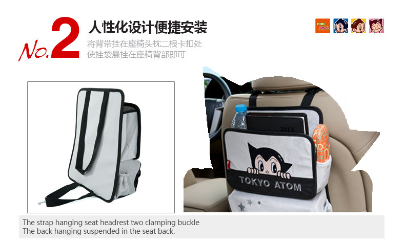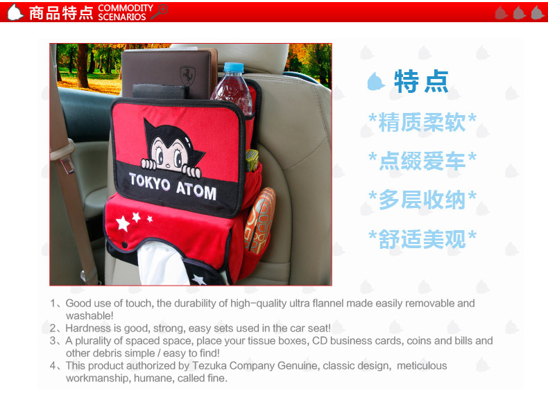 阿童木 汽车椅背置物袋 汽车用杂物盒挂袋 车载卡通收纳箱整理袋