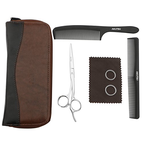 - WORTHWHILE SCISSORS SET: Comes with the finger inserts, you can always find a best way to hold your scissors, set contains 2pcs high quality carbon fiber combs and a leather wiping cloth