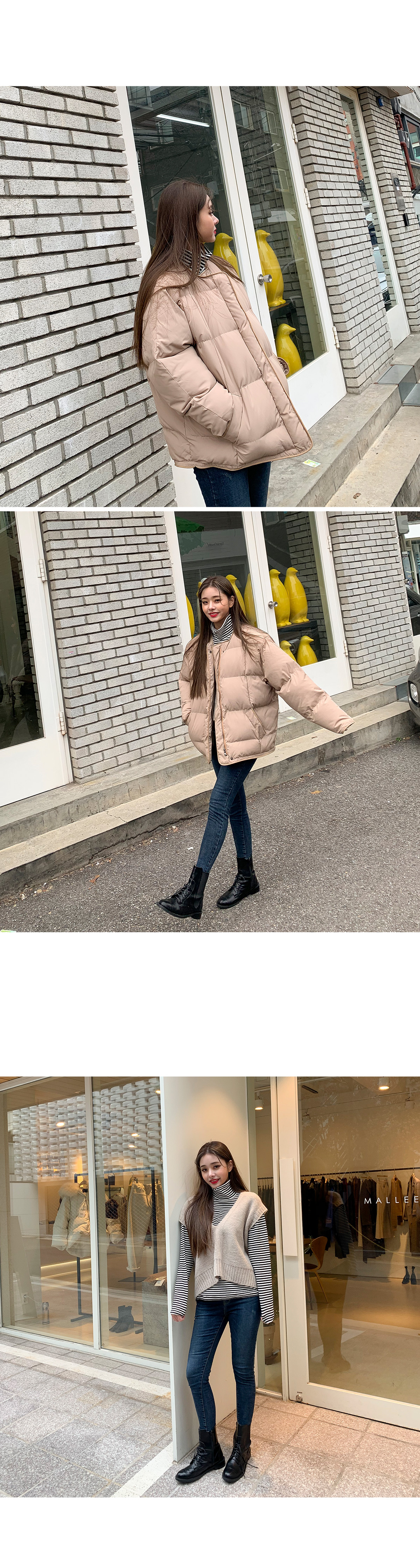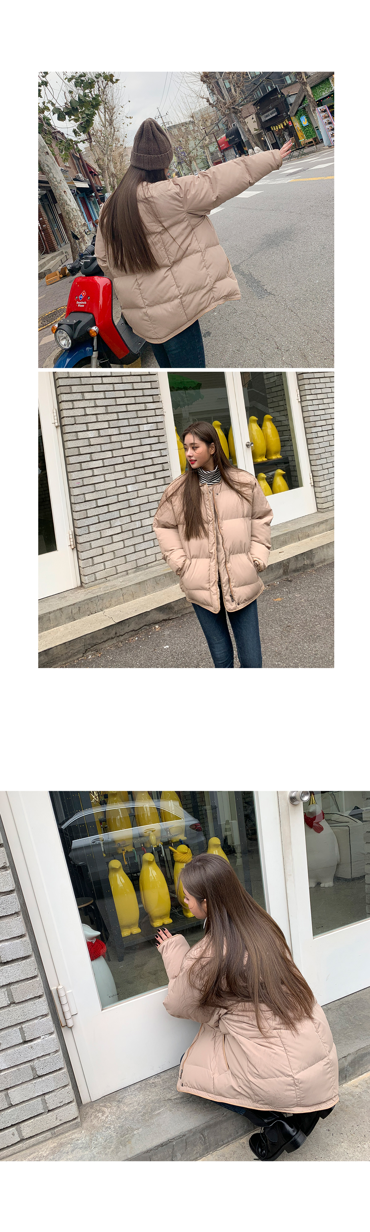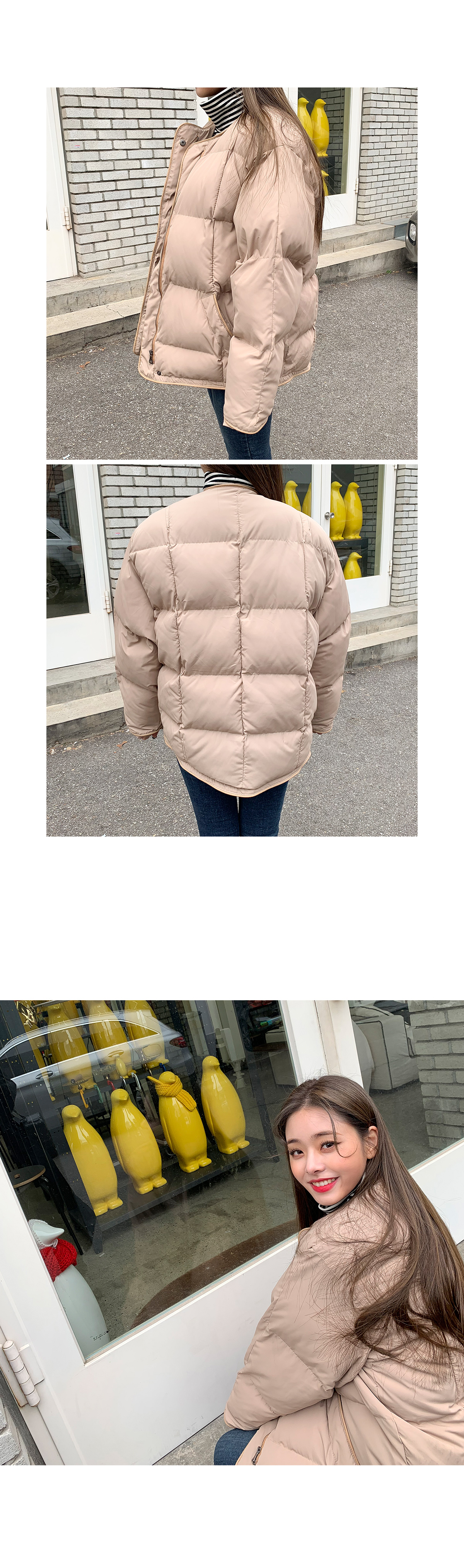 ![]() "콤마 패딩 점퍼" 트렌디하고 핏이 예쁘게 나온 숏 패딩 소개해드릴게요 기장감이 짧아 활동성이 좋고 어디에나 코디하기에도 좋아요! 사각 누빔으로 충전재가 충분히 들어있어 보온성이 뛰어나며 무게도 가벼워 편하게 착용가능하세요:) 노카라로 제작되어 심플하며 끝단은 레더로 마감처리되어 있어요! 가격대비 가성비가 너무 좋게 나온 상품이라 만족도가 높으실거에요~! 넉넉하게 나온 핏으로 두꺼운 니트 위에 입어도 충분히 활동성있는 상품이랍니다ㅎㅎ color 베이지,블랙 fabric 폴리100% / 안감:솜 size FREE 어깨54.5 가슴66 소매통33 소매57.5 총장71 (재는 위치 및 재봉과정에 따라 오차가 있을 수 있습니다) ![]() ![]() ![]() ![]() ![]() ![]() ![]() ![]() ![]() |