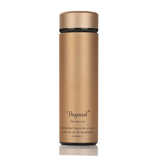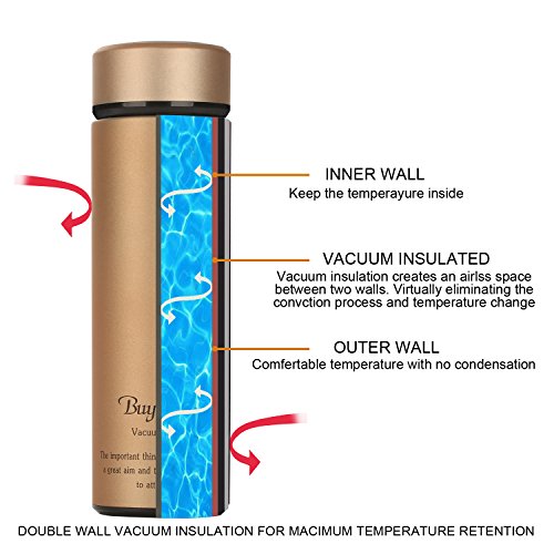Double Wall Vacuum Insulated Travel Mug 16 oz-Stainless Steel Loose Leaf Tea Infuser with Strainer - Coffee Tumbler- Fruit and Juice Infused,Leak-Proof Cup Lid, Portable Thermal Water Bottle,Golden