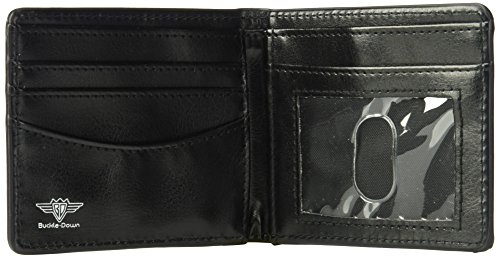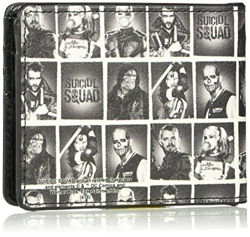 Studio : Buckle-Down Publisher : Buckle-Down Binding : Apparel Product Description This awesome men's bi-fold wallet is made from premium vegan leather. It measures 4.0x3.5x0.5 inches, and features the standard billfold, 5 card slots, and windowed id holder. The logos are applied using advanced printing technologies, so the wallet will still look good after years of hard use. This product is officially licensed by suicide squad and made in USA by Buckle-Down Inc. 0